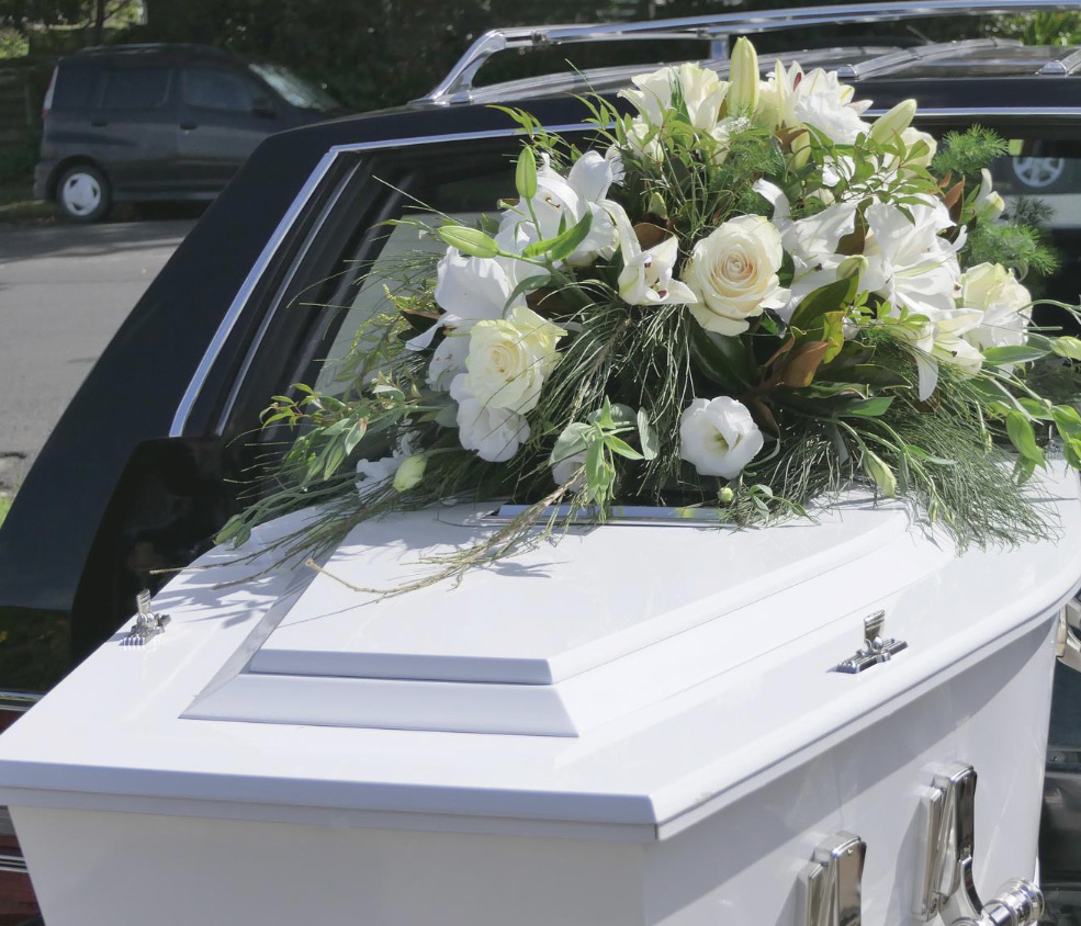 Traslado al velatorio, carroza funeraria al cementerio y vehículo de acompañamiento para familiares.